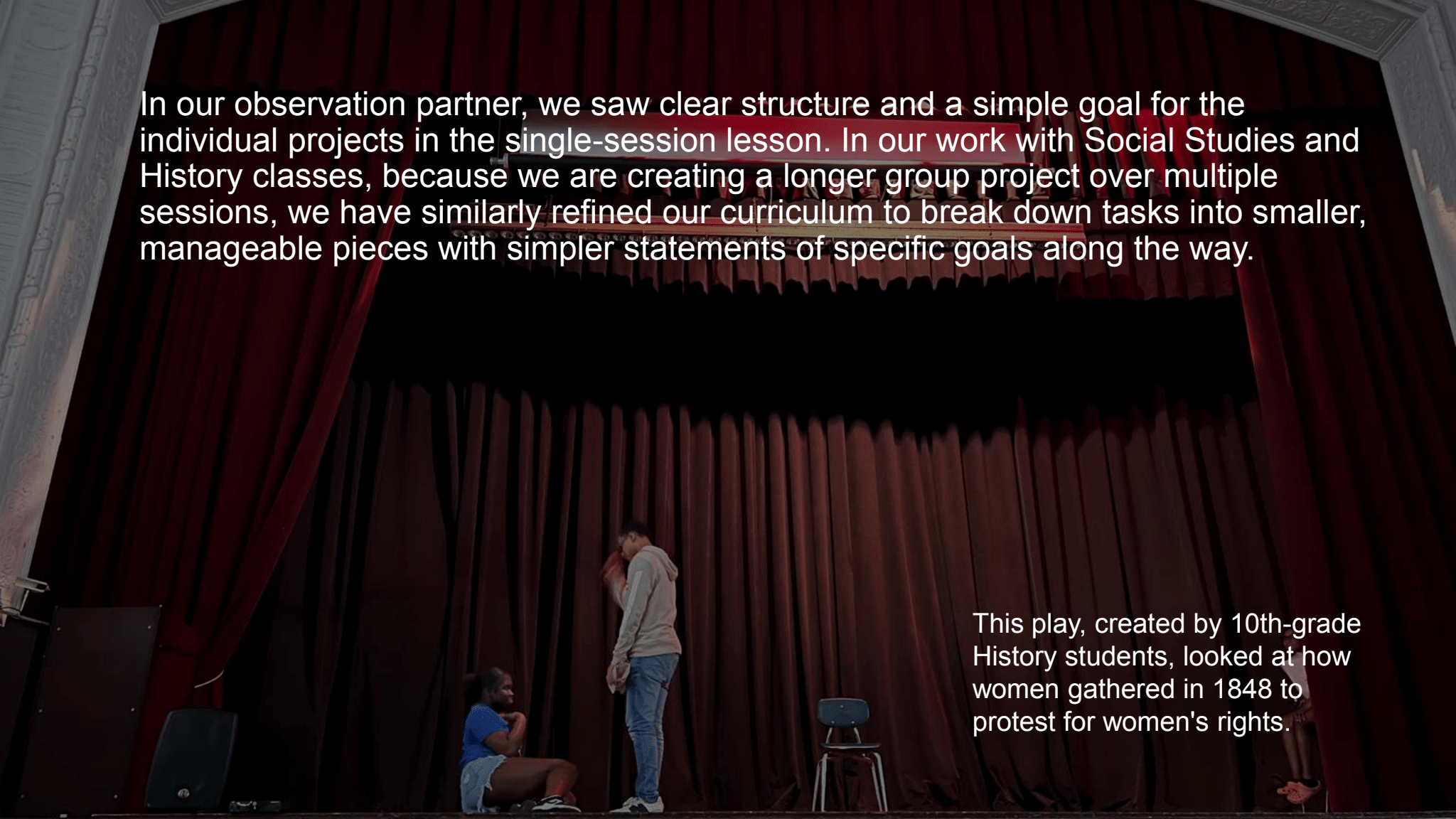 Notice how Lantern Theater uses observations to refine their program by detailing goals clearly for students, teaching artists and families. Based on observations, they decided to refine their structure to include more specific goals and smaller tasks.
